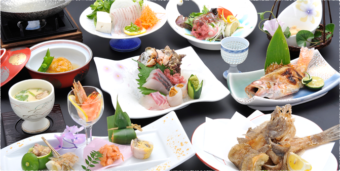 当館の新鮮な魚介類は、料理長自らが毎朝、直接魚市場に